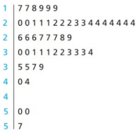 a. Construct a stem-and-leaf diagram of these data with five lines per stem.