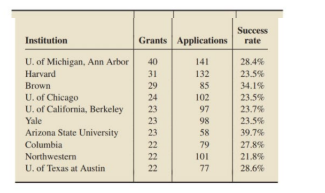 The Fulbright Program. The U.S. government's flagship international educational exchange program, the Fulbright program, is sponsored by the Bureau of Educational and Cultural Affairs. Fulbrights are awarded based on "academic and leadership potential. providing the opportunity to exchange ideas and contribute to finding solutions to shared international concerns." For 2012-2013, the top 10 doctoral/research institutions receiving Fulbright awards are as shown in the following table. The success rate gives the number of grants per application, expressed as a percentage. Identify the type of data provided by the information in each column of the table.