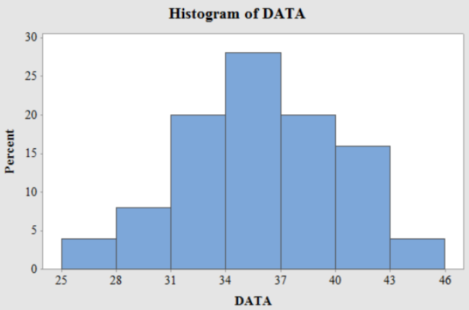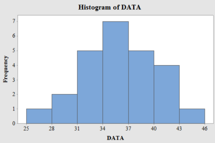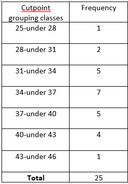 Use cutpoint grouping with a first cutpoint of 25and a class width of 3.