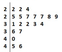 Construct a stem-and-leaf diagram for the data, using two lines per stem.