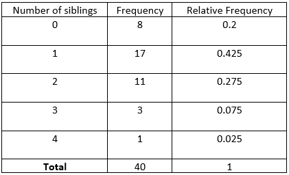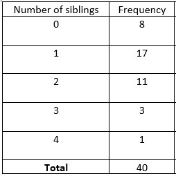 Professor Weiss asked his introductory statistics students to state how many siblings they have. The responses are shown in the following table. Use single-value grouping.