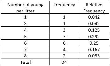 In the paper "The Eastern Cottonmouth at the Northern Edge of Its Range", C. Blem and L. Blem examined the reproductive characteristics of the eastern cottonmouth, a once widely distributed snake whose numbers have decreased recently due to encroachment by humans. A simple random sample of 24 female cottonmouths in Florida yielded the following data on number of young per litter. Use single-value grouping.