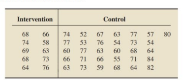 Stressed-Out Bus Drivers. Frustrated passengers, congested streets, time schedules, and air and noise pollution are just some of the physical and social pressures that lead many urban bus drivers to retire prematurely with disabilities such as coronary heart disease and stomach disorders. An intervention program designed by the Stockholm Transit District was implemented to improve the work conditions of the city's bus drivers. Improvements were evaluated by G. Evans et al., who collected physiological and psychological data for bus drivers who drove on the improved routes (intervention) and for drivers who were assigned the normal routes (control). Their findings were published in the article "Hassles on the Job: A Study of a Job Intervention With Urban Bus Drivers" (Journal of Organizational Behavior, ). Following are data, based on the results of the study, for the heart rates, in beats per minute, of the intervention and control drivers.