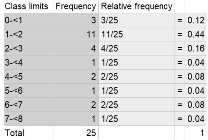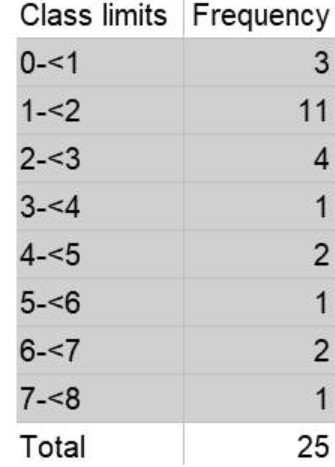 a. Construct a table similar to table for the data, based on the classes specified in Exercise 2.84. Interpret your results.