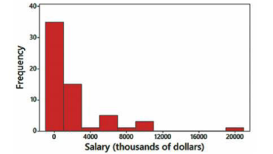 Denver Bronco Salaries confidence level is 99%,\(\sigma = 3342\)thousand dollars, and the histogram of 61 player salaries (thousands of dollars) is shown in Exercise 6.