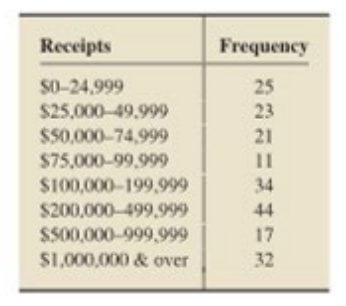 Sales Tax Receipts. The state of Texas maintains records pertaining to the economic development of corporation in the state, From the Economic Development Corporation Report, published by the Texas Comptroller of public Accounts. We obtained the following frequency distribution summarizing the sales tax receipts from the state's Type 4A development corporation during one fiscal year.