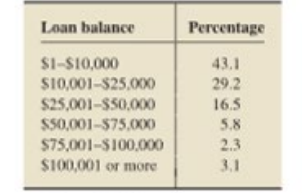 Part (a) Without using the general addition rule, determine the probability that the individual obtained has a loan balance either between \(10,001 and \)100,000 inclusive, or at most $75,000.
