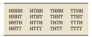 Coin Tossing. When a dime is tossed four times , there are the following 16 possible outcomes.