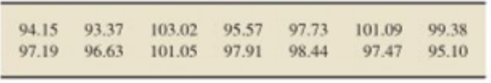 The following table displays finishing times, in seconds for the winners of fourteen 1-mile thoroughbred horse race, as found in Thoroughbred Times.