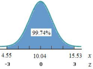 Part (c): Three standard deviation to either side of the mean.