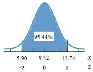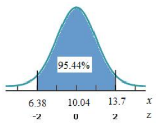 Part (b): Two standard deviation to either side of the mean.