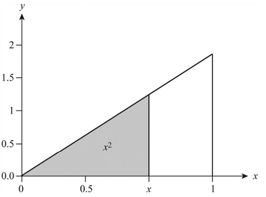 (b) Show that the area under this density curve to the left of any number x between 0 and 1equals .