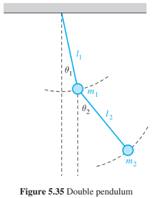 A double pendulum swinging in a vertical plane under the influence of gravity (see Figure5.35) satisfies the system