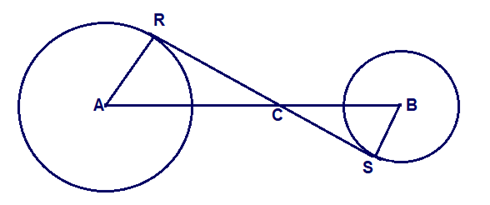 Given: is a common internal tangent to and .