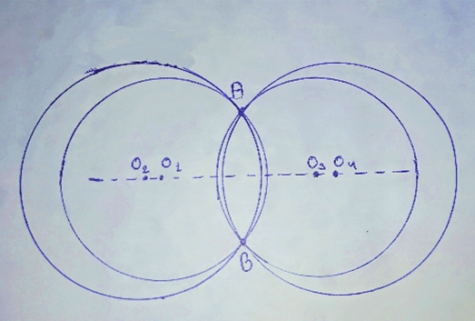 Draw two points & and several circles that pass through and . Locate the centers of these circles. On the basis of your experiment, complete the following statement: