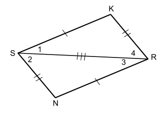 For the following figure, given the two congruent angles. Name two segments that must be congruent.