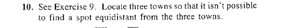 It is not possible to find a spot for the recreation centre which is equidistant from three towns.