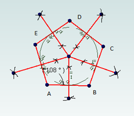 Use a ruler and a protractor to draw a regular pentagon. Then construct the perpendicular bisectors to the five sides.