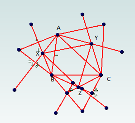 The intersections of medians of a triangle forms a new equilateral triangle.