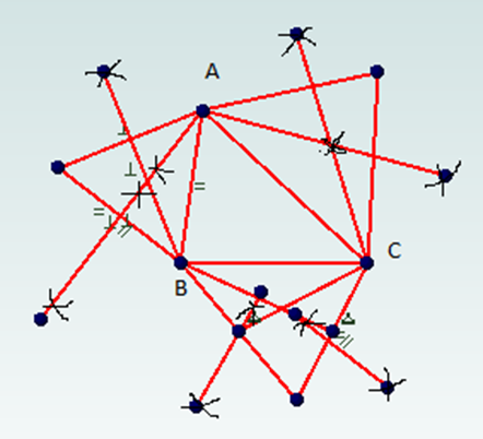 - In each of the three equilateral triangles, construct any two medians and find their point of intersection.