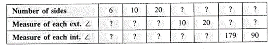Step 7. Find the value of the number of sides and measure of each exterior angle of the regular polygon having measure of each interior angles equal to 179°.