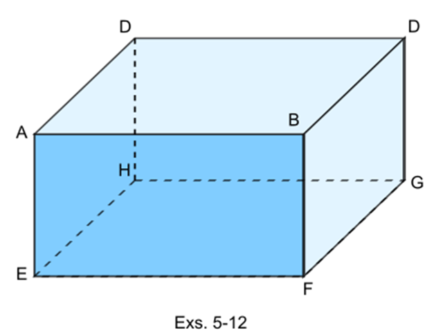 In Exercises 5-11 you will have to visualize certain lines and planes not shown in the diagram of the box. When you name a plane, name it by using four points, no three of which are collinear.
