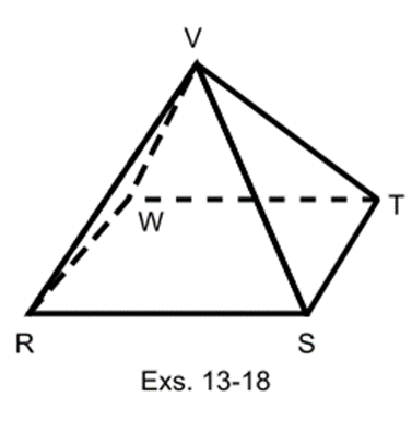 A plane can be named by three or more non-collinear points it contains. In chapter 12 you will study pyramids like the one shown at the right below.