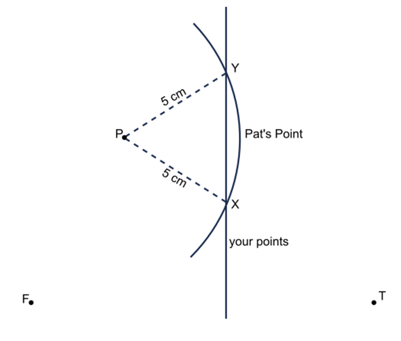 It appears as if points P, X, and T might lie on a straight line. Use a ruler or the edge of a sheet of paper to see if they do.