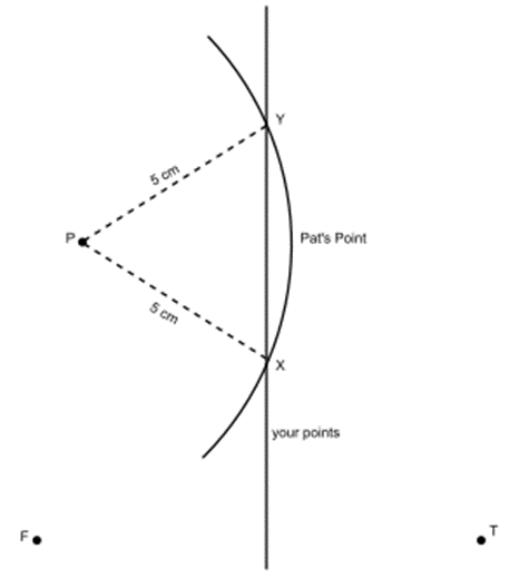 In a more complete diagram, would there be a redpoint 15 cm from both F and T? How many such points?