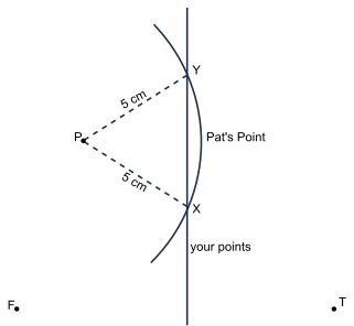 Point X is equidistant from F and T. Furthermore, point Y is equidistant from F and T. Does that mean that X and Y are equally distant from F?