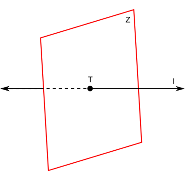 Three vertical planes intersect in a line.