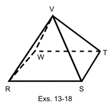 A plane can be named by three or more non-collinear points it contains. In chapter 12 you will study pyramids like the one shown at the right below.