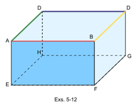 In Exercises 5-11 you will have to visualize certain lines and planes not shown in the diagram of the box. When you name a plane, name it by using four points, no three of which are collinear.