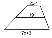 Each diagram shows a trapezoid and its median. Find the value of x.