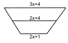Each diagram shows a trapezoid and its median. Find the value of x.