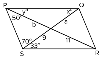 In Exercises 5-10 quad. PQRS is a parallelogram. Find the values of a, b, x and y.