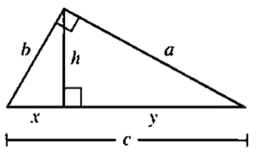 For a right triangle with a perpendicular being drawn to the hypotenuse (as shown below), the both small triangles are congruent to each other and to the bigger triangle. This gives the relation between the hypotenuse and of the legs of the smaller triangle as,