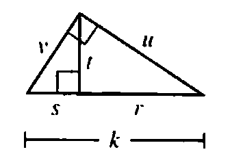 For the given triangle, the altitude is represented by t and the parts of the hypotenuse are s and r.