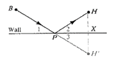 - Let be the image of H by reflection in the wall. Intersects the wall at P. Why is ? Why is ? Why is ? You can conclude that if you aim for , the ball will roll to H.