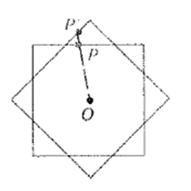The red and blue squares are congruent and have the same center O. A mapping maps each point P of the red squares to the point where intersects the blue squares.