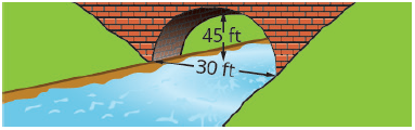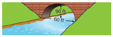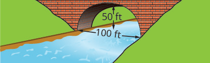 Write the equation of the parabolic arch formed in the foundation of the bridge shown. Write the equation in standard form.