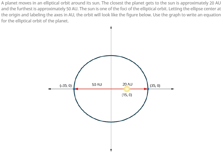 The equation for the elliptical orbit of the planet is .