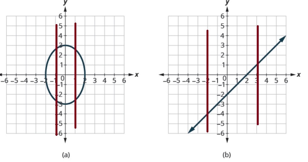 The vertical lines of graph (a) crosses the graph at two points. The graph (a) is not the graph of a function.