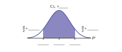 Fill in the blanks on the graph with the areas, upper and lower limits of the confidence interval, and the sample
