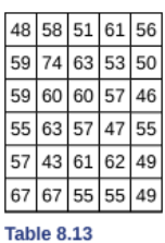 The Table 8.13 shows the ages of the corporate CEOs for a random sample of these firms.