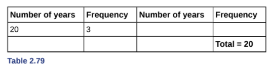 Use the following information to answer the next three exercises: We are interested in the number of years students in a particular elementary statistics class have lived in California. The information in the following table is from the entire section.