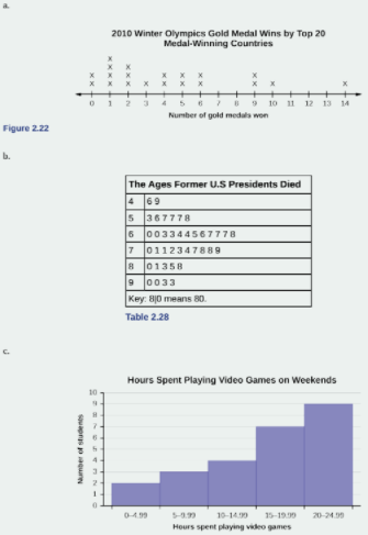 Discuss the mean, median, and mode for each of the following problems. Is there a pattern between the shape and measure of the center?