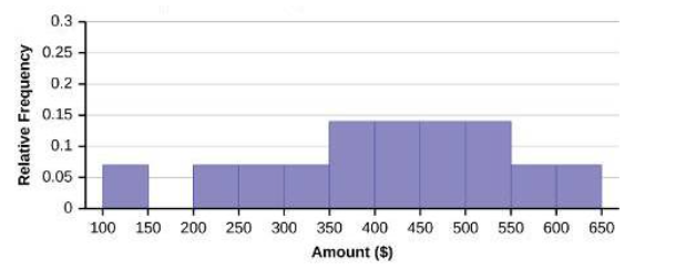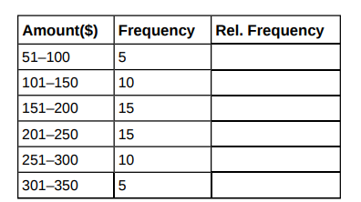 | Amount($) | Frequency | Relative Frequency |