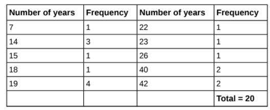 Use the following information to answer the next three exercises: We are interested in the number of years students in a particular elementary statistics class have lived in California. The information in the following table is from the entire section.