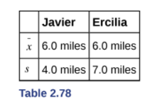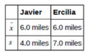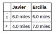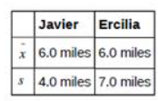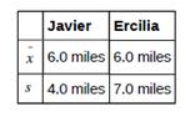 Javier and Ercilia are supervisors at a shopping mall. Each was given the task of estimating the mean distance that shoppers live from the mall. They each randomly surveyed shoppers. The samples yielded the following information.
